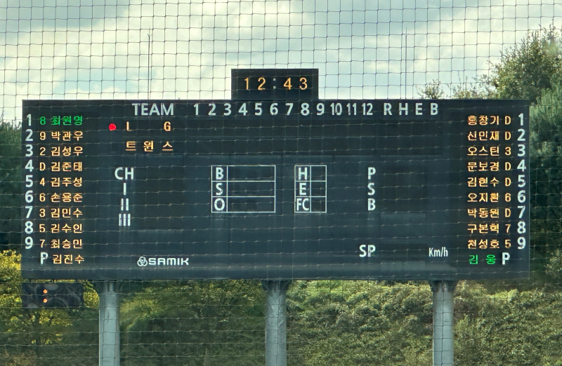 한편 청팀에는 최원영(중견수)-박관우(우익수)-김성우(포수)-김준태(지명타자)-김주성(2루수)-손용준(유격수)-김민수(1루수)-김수인(3루수)-최승민(좌익수)로 구성했다.