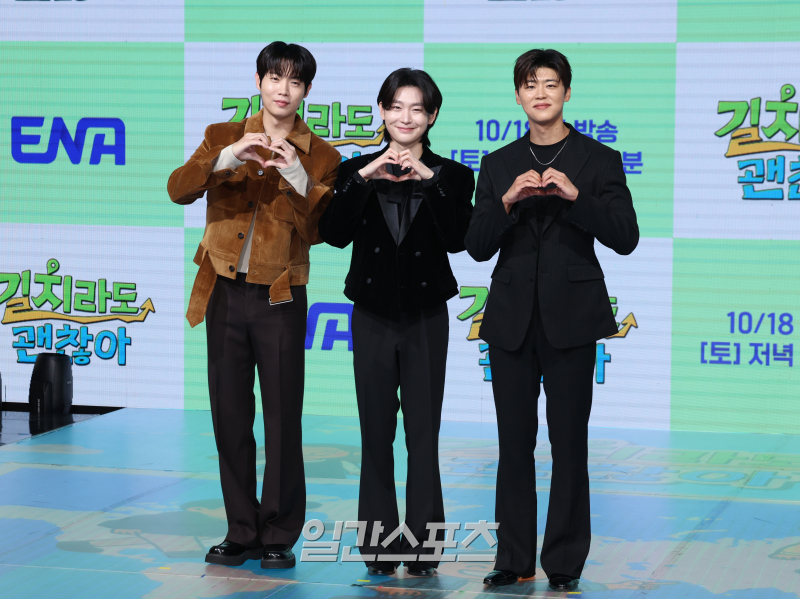 가수 손태진, 김용빈, 박지현이 16일 오전 서울 마포구 쇼킹케이팝센터에서 열린 ENA 예능 '길치라도 괜찮아' 제작발표회에 참석해 포토타임을 갖고 있다. '길치라도 괜찮아'는 갈팡질팡 길치들을 위한 백만 여행 크리에이터들의 맞춤 설계, 그 특별한 루트를 대표 길치 연예인들이 직접 떠난다! 오는 18일 저녁 7시 50분 첫 방송. 서병수 기자 qudtn@edaily.co.kr /2025.10.16/