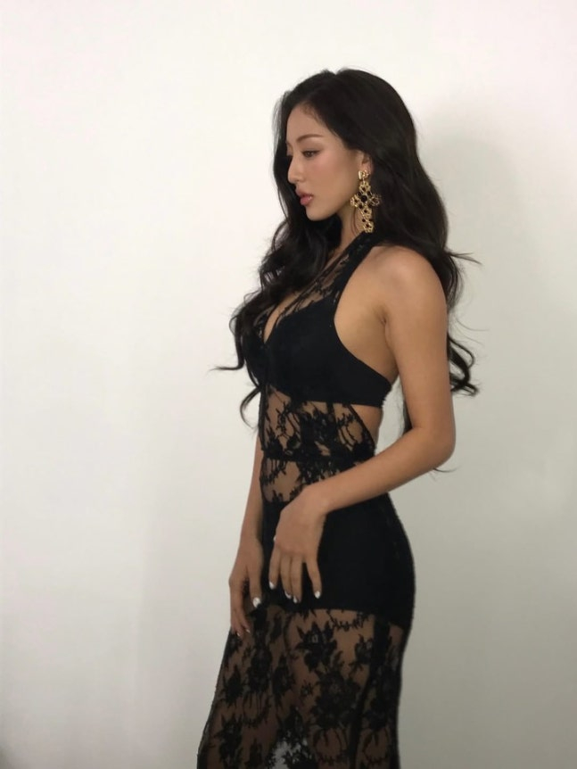 그룹 트와이스 지효가 시스루 드레스로 성숙미를 뽐냈다.