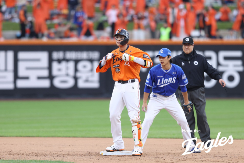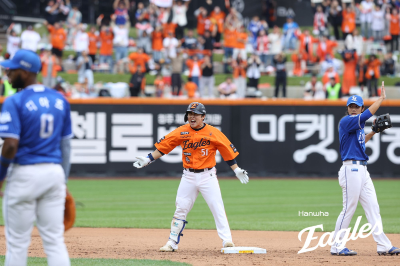 한화는 8회 말 추가 득점하며 쐐기를 박았다. 2사 후 문현빈의 볼넷과 노시환의 안타, 채은성의 적시타로 1점을 더 달아났다.