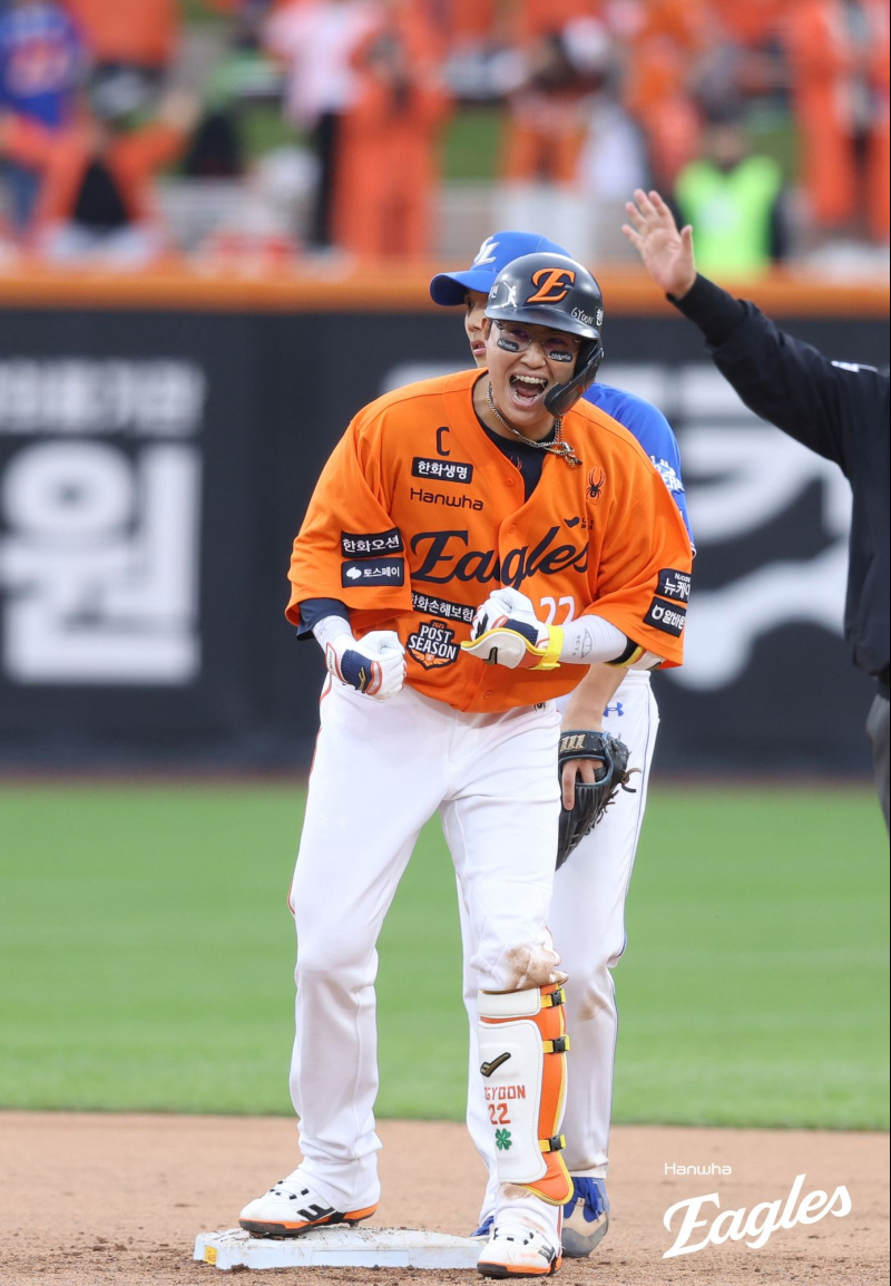 채은성은 18일 대전 한화생명 볼파크에서 열린 2025 KBO리그 포스트시즌(PS) 삼성 라이온즈와의 플레이오프(PO·5전 3승제) 1차전에 5번 타자·1루수로 선발 출전, 5타수 3안타 3타점 맹타를 휘두르며 한화의 9-8 승리를 이끌었다. 역전타와 쐐기타 모두 그가 해냈다. 5전 3승제로 진행된 역대 PO에서 1차전 승리 팀의 KS 진출 확률은 76.5%(34번 중 26번)다. 채은성이 7년 만에 PS를 치른 한화에 첫 승을 안겼다.