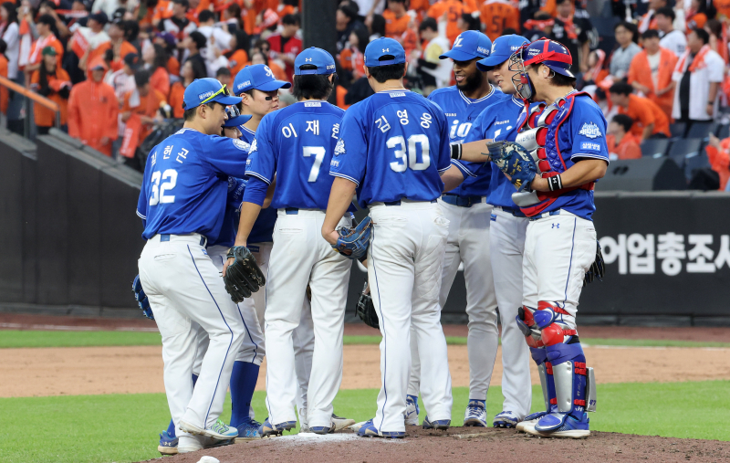 삼성은 19일 대전한화생명볼파크에서 열린 2025 KBO리그 포스트시즌(PS) 한화 이글스와의 PO 2차전에서 7-3으로 승리했다. 선발 투수 최원태가 7이닝 1실점으로 호투했다. SSG 랜더스와의 준PO 1차전(6이닝 무실점)에 이어 두 경기 연속 '짠물' 피칭을 해내며 'PS 무대에서 약하다'라는 그동안 선입견을 완전히 지웠다. PS 내내 뜨거웠던 타선은 한화 선발 투수 라이언 와이스를 상대로 4회까지 5점을 냈다. 안방에서 투수들을 이끌고 있는 강민호는 9회 초 투런홈런을 치며 다소 소강 상태였던 득점 포문을 열었다.