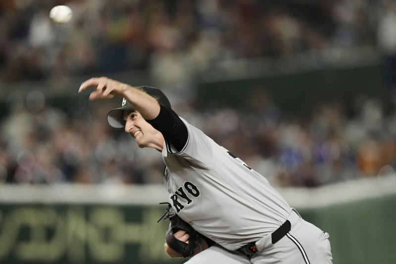 Yomiuri Giants pitcher Foster Griffin (29) throws to the Chicago Cubs in the first inning of an MLB Japan Series exhibition baseball game in Tokyo, Japan, Sunday, March 16, 2025. (AP Photo/Hiro Komae)/2025-03-16 19:40:31/ <저작권자 ⓒ 1980-2025 ㈜연합뉴스. 무단 전재 재배포 금지, AI 학습 및 활용 금지>