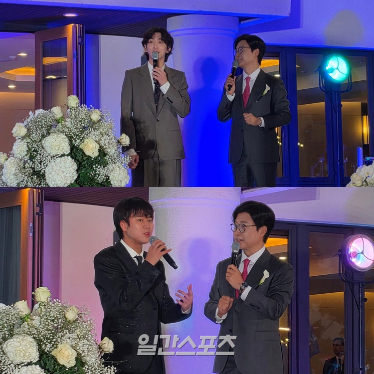 이날 결혼식 1부 사회는 방송인 김성주가 맡아 매끄러운 진행을 선보였고, 2부 파티는 개그맨 문세윤이 유쾌한 분위기로 이끌었다. 사진=SNS 캡처. 축가 무대도 화려했다. 가수 이무진, 뮤지, 밴드 잔나비가 무대에 올라 신랑신부를 축하했다. 이어 아버지 이승철은 밴드와 함께 직접 무대에 올라 총 5곡을 열창하며 딸의 결혼을 축하했다. 그의 노래가 흐르자 하객들은 미소와 박수로 화답하며 따뜻한 순간을 함께했다.