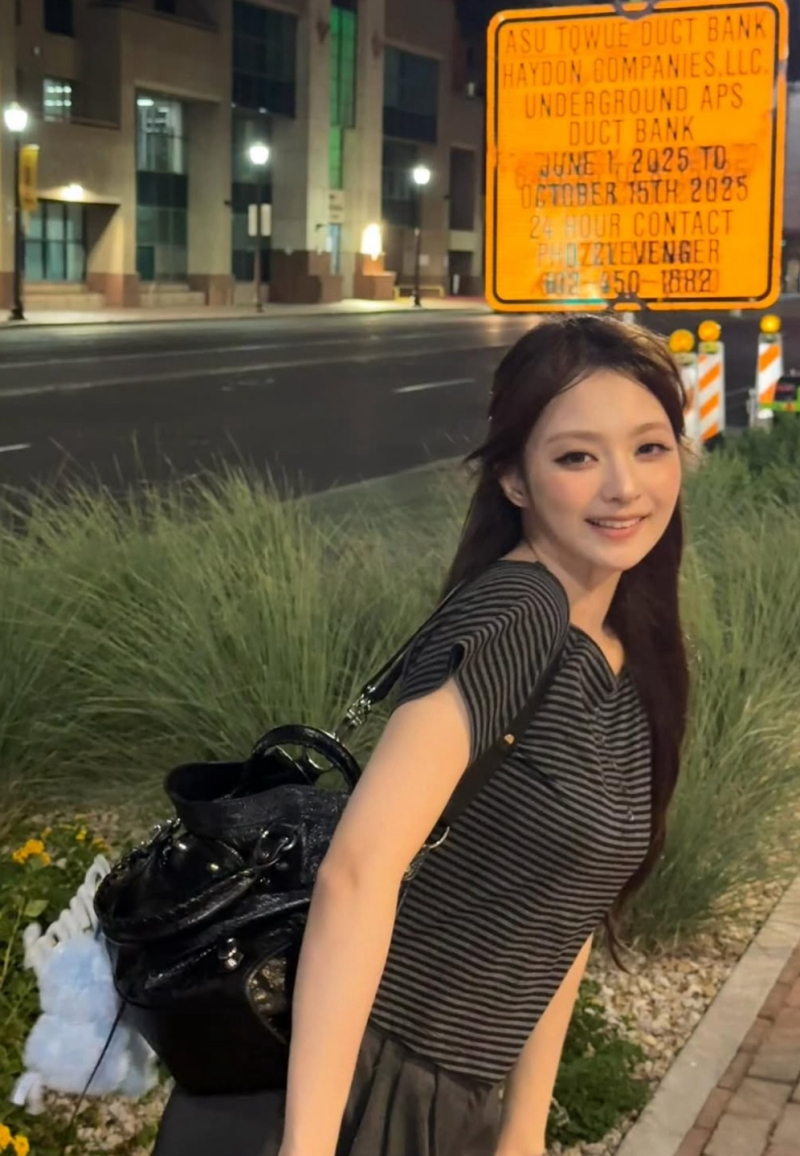 이나경은 지난 20일 자신의 SNS에 여러 장의 근황 사진을 게재했다. 공개된 사진 속 이나경은 어두운 밤거리에서도 빛나는 미모를 뽐냈다. 스트라이프 티셔츠에 블랙 백을 매치해 내추럴하면서도 세련된 무드를 연출했다. 사진=이나경 SNS. 특히 또렷한 이목구비와 소멸 직전의 작은 얼굴, 깨끗한 피부톤이 어우러져 조명 없이도 환하게 빛나는 ‘비주얼 피지컬’을 완성했다. 자연스러운 헤어스타일과 은은한 미소는 특유의 청순함을 한층 배가시켰다.