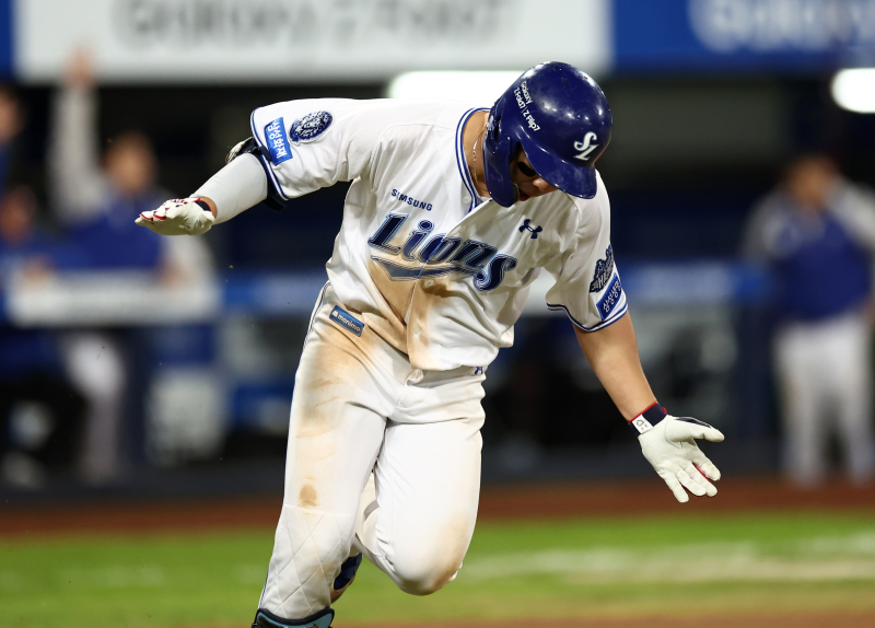 내가 영웅 (대구=연합뉴스) 윤동진 기자 = 22일 대구삼성라이온즈파크에서 열린 2025 KBO 포스트시즌 플레이오프 한화 이글스 대 삼성 라이온즈 4차전. 6회 말 1사 1,3루 때 삼성 김영웅이 3점 홈런을 친 후 그라운드를 달리고 있다. 2025.10.22 mon@yna.co.kr/2025-10-22 21:02:11/ <저작권자 ⓒ 1980-2025 ㈜연합뉴스. 무단 전재 재배포 금지, AI 학습 및 활용 금지>