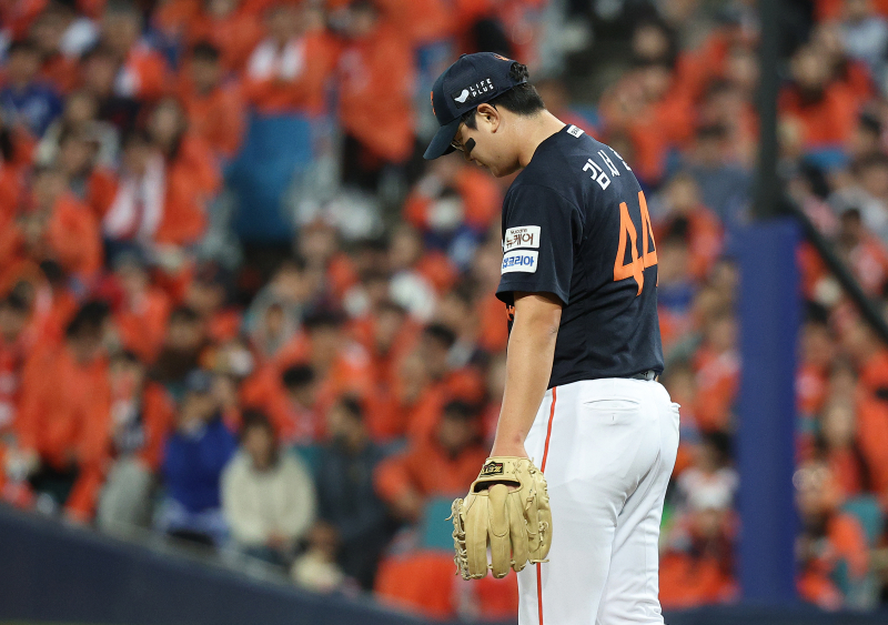 김경문 감독 입장에선 이 상황에서 김서현이 위기를 넘어가면, 그가 자신감을 안고 KS 있을 것이라는 기대를 했을 것이다. 김서현이 디아즈를 내야 땅볼 처리하며 첫 타자를 잘 넘기기도 했다. 하지만 김서현은 김영웅에게 3연속 직구를 구사하다가 동점 스리런홈런을 맞고 말았다. 그렇게 승부가 원점으로 돌아갔다.