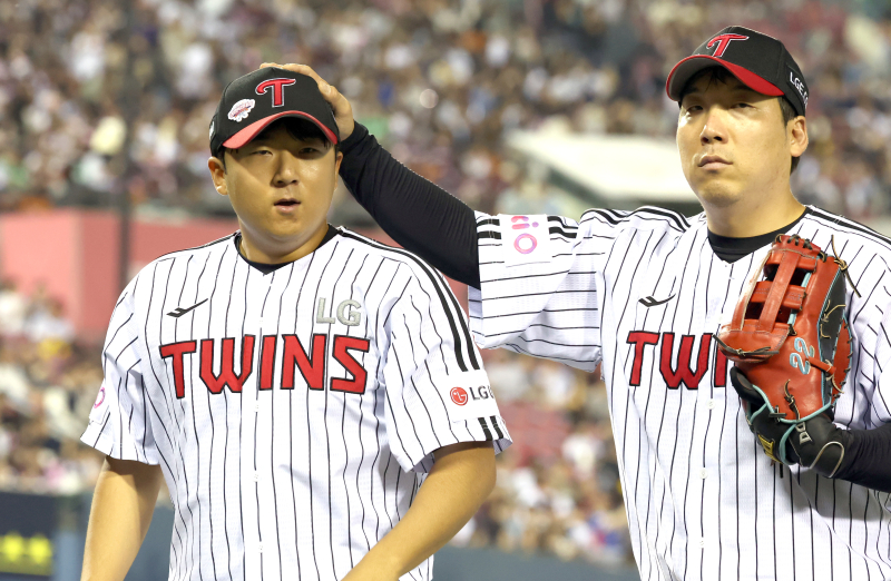 입단 5년 차 송승기의 개인 첫 포스트시즌(PS) 롤모델은 손주영이다. 손주영은 프로 데뷔 8년 차였던 지난해 처음으로 PS에 데뷔했다. 특히 구원으로 나선 준플레이오프(준PO) 2경기에서 7과 3분의 1이닝 동안 2피안타 11탈삼진 무실점 호투로 1승 1홀드를 기록했다. PO에선 선발과 불펜으로 모두 활약하는 등 강렬한 인상을 남겼다. 14일 오후 잠실야구장에서 열린 2025 프로야구 키움과 LG 경기. LG 선발 송승기가 5회 키움 카디네스를 유격수 플라이 아웃시키고 이닝을 마치고 들어오며 김현수의 격려를 받고 있다. 잠실=정시종 기자 capa@edaily.co.kr /2025.05.14. 송승기는 "지난해 주영이 형이 했던 것처럼 올해 잘하고 싶다"라고 말했다. 이어 "주영이 형에게 불펜 투수로 몸을 풀거나 팔 관리, 보강 훈련 방법 등에 관해 조언을 받았다"라며 "지금은 선발 투수의 루틴을 모두 지웠다"고 덧붙였다.