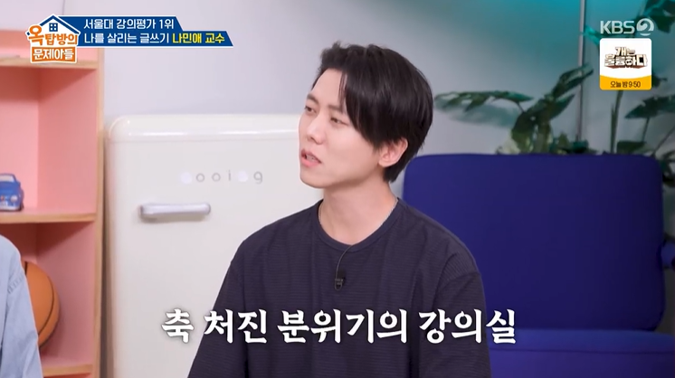 23일 오후 방송한 KBS2 예능 ‘옥탑방의 문제아들’에는 나태주 시인의 딸이자 19년째 서울대학교에서 글쓰는 법을 가르치고 있는 나민애 교수가 출연했다.