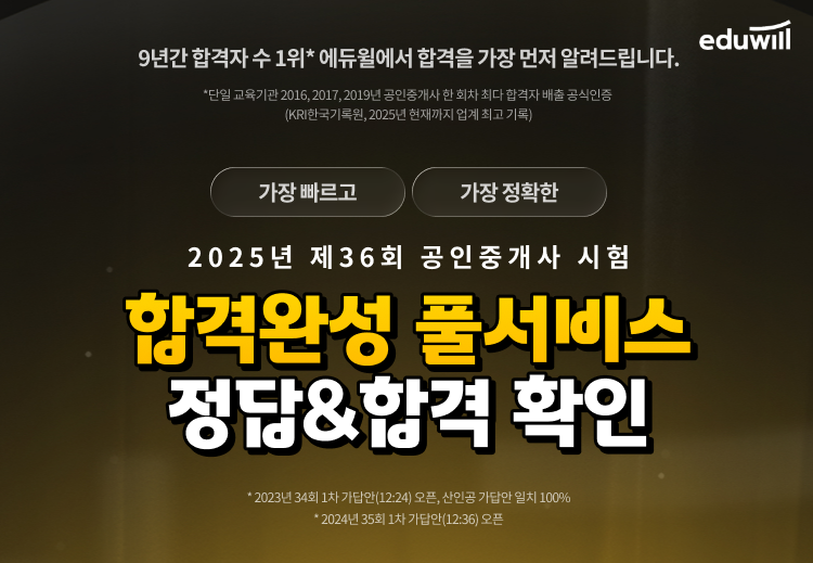 국민교육기업 에듀윌(대표 양형남)이 10월 25일(토) 전국 고사장에서 시행되는 제36회 공인중개사 시험 당일, 가장 빠른 가답안 공개와 자동채점 서비스를 운영한다고 25일 밝혔다.