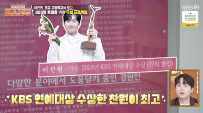 [TVis] 이찬원, 모교 빛낸 인물 등극…”업데이트 빨라” (‘편스토랑’)