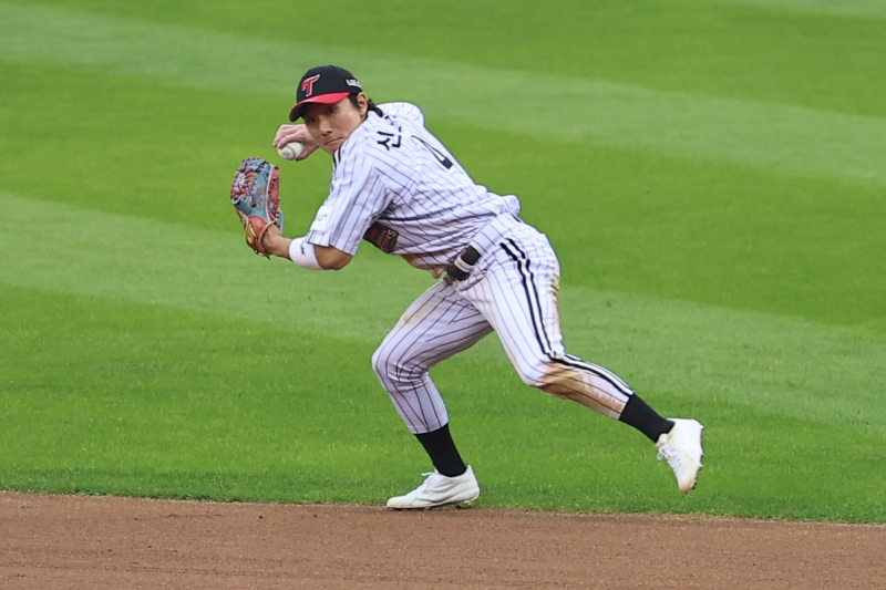 신민재는 3-0으로 앞선 5회 말 1사 후 3루타를 치고 나가 오스틴 딘의 내야 땅볼 때 홈을 파고 들어 세이프가 됐다. 타이밍상 아웃이었지만 이번에도 신민재의 빠른 발이 돋보였다. 이어 4-2로 쫓긴 6회에는 1사 만루에서 2타점 적시타를 터뜨렸다. 특히 호수비도 여러차례 선보였다. 호수비로 기세 더하는 신민재 (서울=연합뉴스) 서대연 기자 = 26일 서울 잠실야구장에서 열린 2025 프로야구 KBO리그 포스트시즌 한국시리즈 1차전 한화 이글스와 LG 트윈스의 경기. 7회초 1사 주자 없는 상황 LG 2루수 신민재가 한화 이도윤의 타구를 잡아 1루로 송구하고 있다. 2025.10.26 dwise@yna.co.kr/2025-10-26 16:28:42/ <저작권자 ⓒ 1980-2025 ㈜연합뉴스. 무단 전재 재배포 금지, AI 학습 및 활용 금지> 신민재는 이날 경기 전에 "이천 합숙 훈련에서 피칭머신 시속 160㎞ 공도 쳤다"라며 "직구는 칠만할 것 같다"고 말했다. 이날 선발 투수 문동주에 대해 "워낙 직구가 빠른 선수다 보니 오늘 변화구보다 직구에 초점을 두고 타석에 들어가려고 한다"고 말했고, 실제 3안타(문동주 2개·박상원 1개) 모두 직구를 받아친 것이었다.