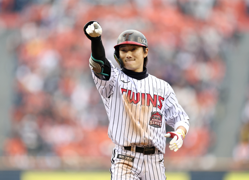 다만 신민재의 속마음은 "문보경이 (타격감을) 많이 묵혀뒀다"라고 웃으며 "며칠 전부터 훈련할 때 타격하는 걸 보니 좋더라"고 귀띔했다. 이어 "(오)지환이 형도 정규시즌과 달리 타격감이 정말 좋다"고 놀라워했다.