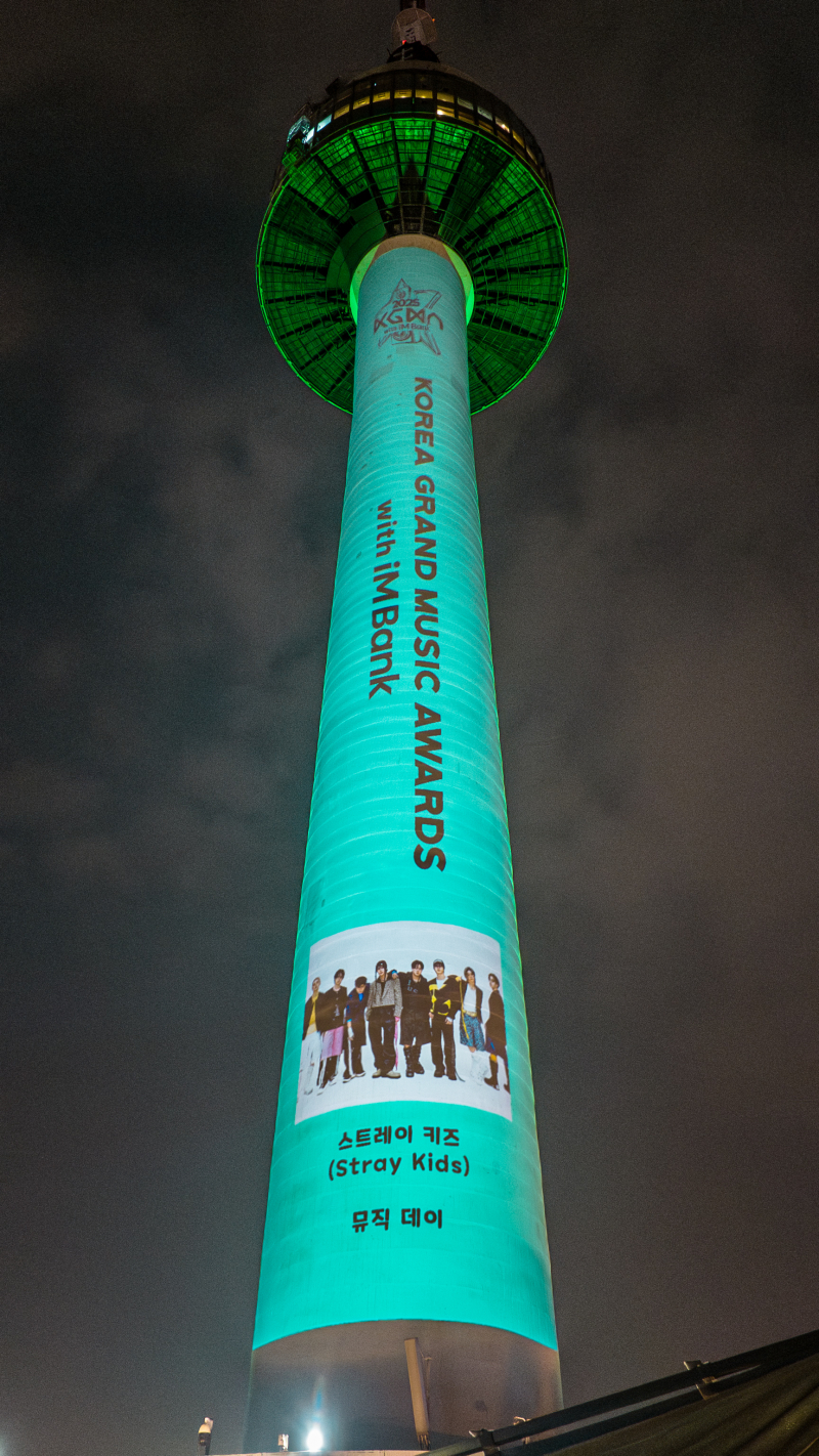 국내 최고 엔터테인먼트·스포츠 신문 일간스포츠가 주최하는 ‘2025 코리아 그랜드 뮤직 어워즈 with iM뱅크’(KGMA) 개최를 기념해 지난 26일 오후 전 세계 K팝 팬들의 관심이 집중된 남산서울타워에서 화려한 미디어아트가 펼쳐졌다. 약 두 시간 동안 진행된 미디어아트를 통해 KGMA 31팀 출연진의 모습이 펼쳐지며 서울의 랜드마크를 민트빛으로 물들었다.