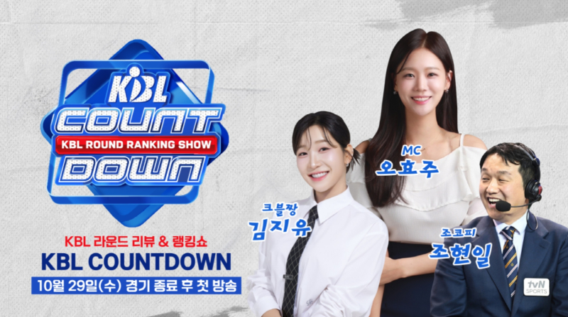 ‘KBL COUNTDOWN : 라운드 랭킹쇼’는 오는 10월 29일 수요일 경기 종료 후 첫 방송되며, tvN SPORTS와 TVING을 통해 시청할 수 있다.