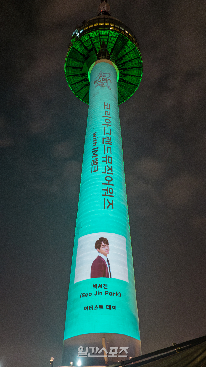 가수 박서진의 미디어아트 쇼가 남산서울타워를 민트빛으로 물들였다.