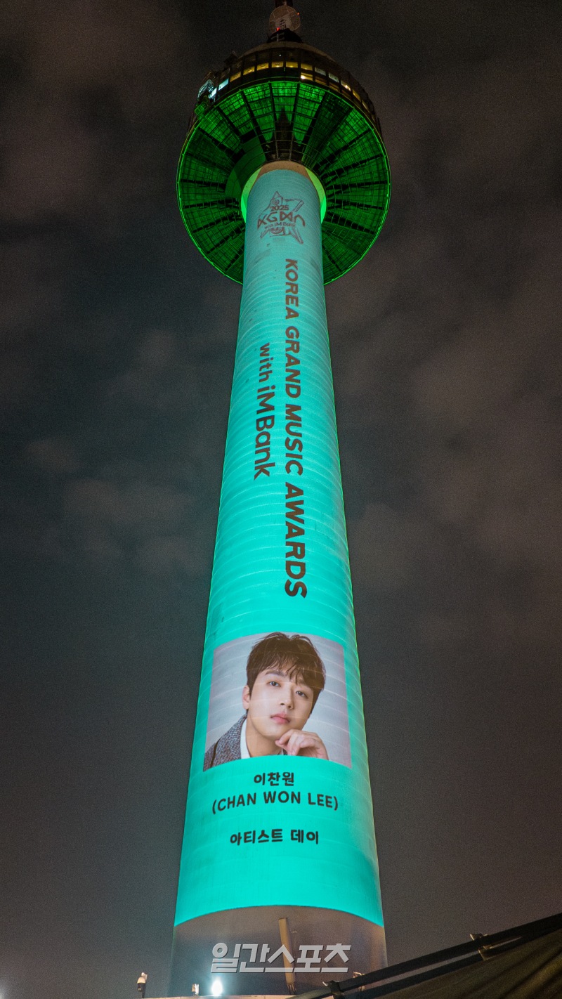가수 이찬원의 미디어아트 쇼가 남산서울타워를 민트빛으로 물들였다.