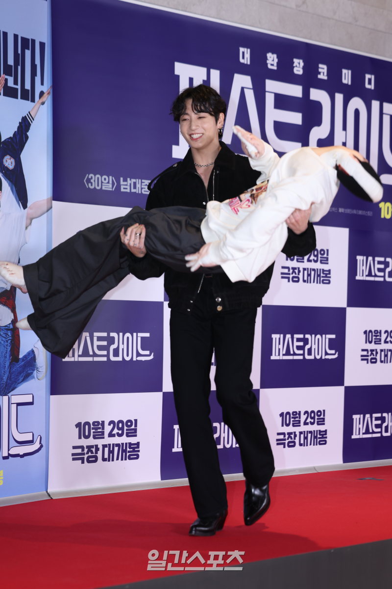 [포토] 차은우 인형 들고 뛰는 BTS 정국