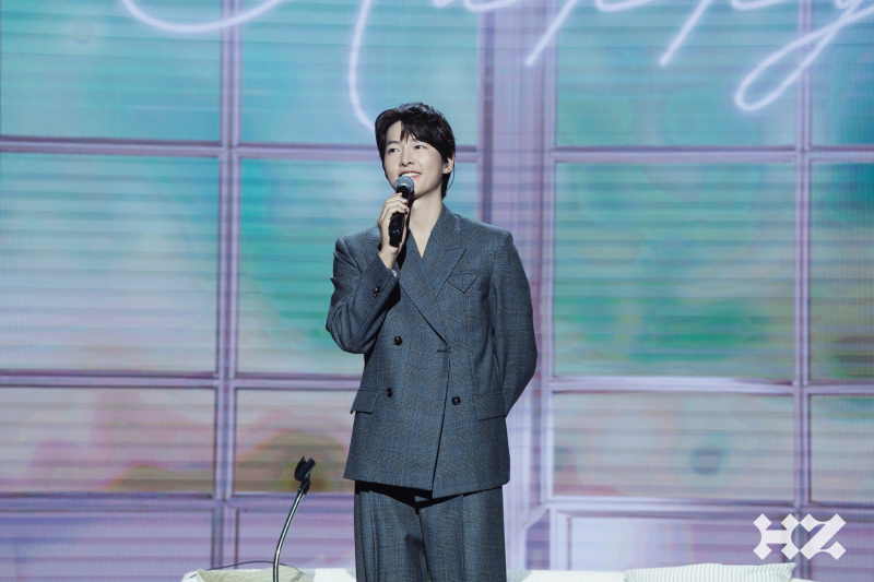 무대 마지막, 송중기는 “첫 등장 때 문이 열리면서 몇몇 분들과 눈이 마주쳤는데 긴장이 됐다. 반겨주셔서 감사드린다. 배우로서 좋은 작품으로 빨리 인사드리겠다. 오늘의 주제가 ‘행복’이었는데, 저의 행복이 되어주셔서 감사드린다. 오늘은 제게도 행복이 충만한 시간이었다.”라며 팬들에게 진심을 전했다.