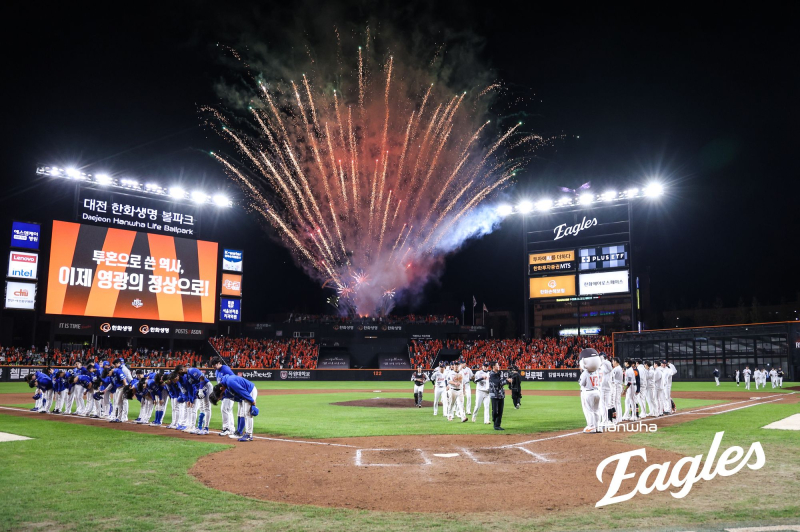 김승연 회장은 19일 열린 PO 2차전에는 직접 경기장에 방문했다. 관중 앞에 모습을 드러내진 않았지만, 한화가 4-7로 패한 이 경기 뒤에도 모든 야구팬에게 감사를 전하기 위해 '불꽃쇼'를 선물했다.