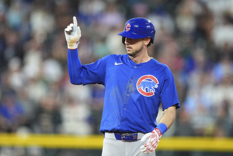 Chicago Cubs' Kyle Tucker gestures to the dugout after reaching second base on a double off Colorado Rockies starting pitcher McCade Brown in the fifth inning of a baseball game Saturday, Aug. 30, 2025, in Denver. (AP Photo/David Zalubowski)/2025-08-31 11:10:33/ <저작권자 ⓒ 1980-2025 ㈜연합뉴스. 무단 전재 재배포 금지, AI 학습 및 활용 금지>