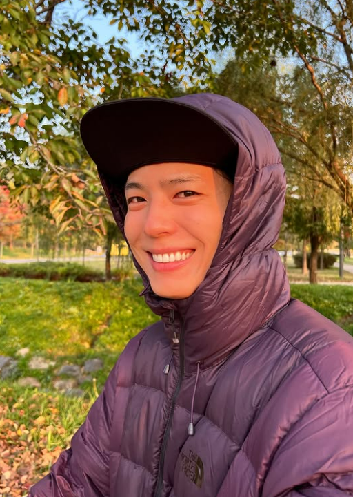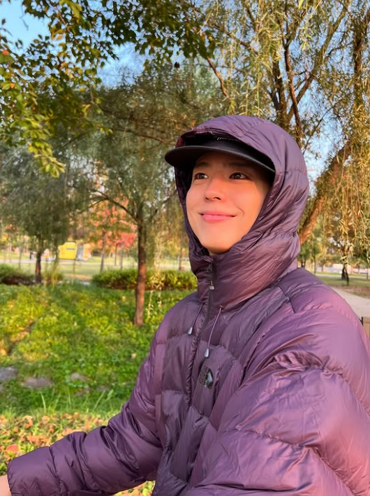 공개된 사진 속 박보검은 짙은 퍼플톤 패딩을 입고 모자를 눌러쓴 채, 따뜻한 햇살 아래에서 환한 미소를 짓고 있다. 자연스러운 표정과 눈빛이 조용히 번지는 가을의 공기와 어우러지며 보는 이들의 마음을 포근하게 만든다.