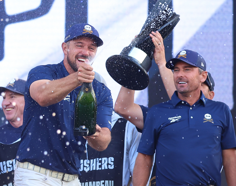 LIV 코리아 휩쓴 크러셔스 팀 (인천=연합뉴스) 김도훈 기자 = 4일 인천 송도 잭 니클라우스 골프클럽 코리아에서 열린 LIV 골프 코리아 단체전 우승을 차지한 크러셔스 브라이슨 디섐보(왼쪽)와 찰스 하월 3세가 우승 세리머니를 하고 있다. 개인전에서는 디섐보가 우승을, 하월 3세는 준우승을 차지했다. 2025.5.4 superdoo82@yna.co.kr/2025-05-04 18:50:35/ <저작권자 ⓒ 1980-2025 ㈜연합뉴스. 무단 전재 재배포 금지, AI 학습 및 활용 금지> LIV 골프가 2026시즌부터 기존 3라운드에서 4라운드로 확대한다.
