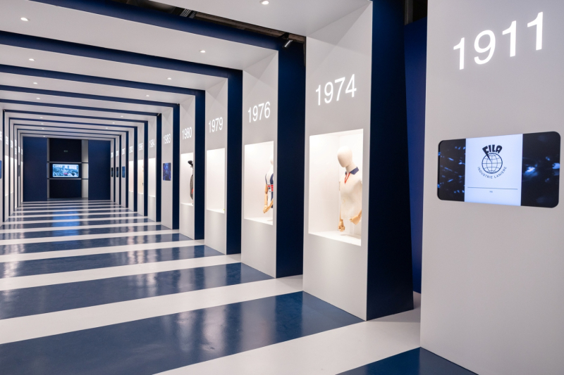 센터 내부에는 휠라 박물관과 더불어 아카이브 공간이 함께 마련되어 있으며 브랜드의 기원부터 글로벌 스포츠 라이프스타일 브랜드로의 전환 과정이 전시를 통해 소개된다. 휠라는 1911년 니트웨어 제조업체로 시작해 1970년대 엔리코 프라체이(Enrico Frachey)의 리더십 아래 테니스를 브랜드의 핵심 스포츠로 정하고 액티브웨어 분야에 본격 진출했다. 특히 전설적인 테니스 스타이자 휠라 브랜드 앰배서더 비에른 보리(Björn Borg)와의 협업은 휠라가 스포츠 역사에 깊이 자리 잡는 계기가 되었으며, 이번 전시에서도 주요 스토리 라인으로 구성됐다.