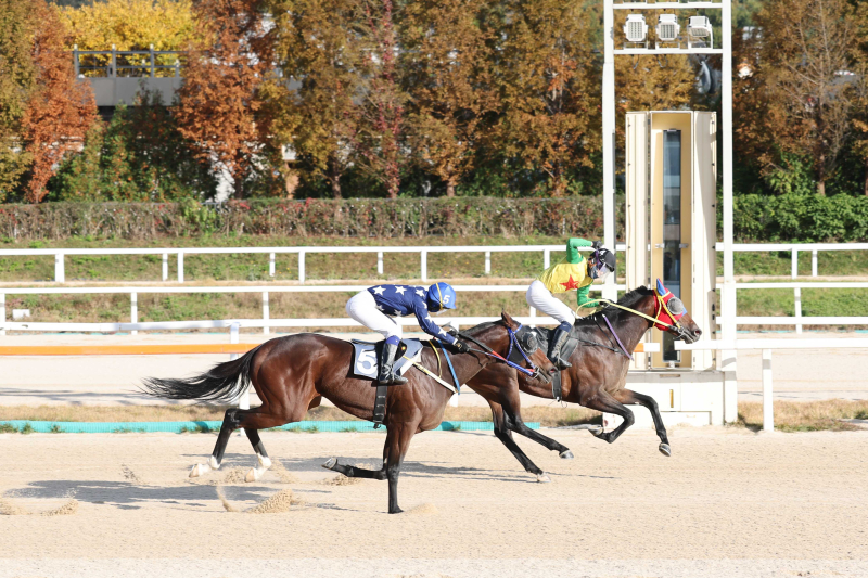 서울경제신문배 청산질주(왼쪽)와 비에스스톰. 사진=한국마사회 지난 2일 렛츠런파크 서울에서 열린 '제14회 서울경제신문배(혼4등급, 연령성별오픈, 1700m, 레이팅 50이하, 순위상금 6000만원)'에서 비에스스톰(한국, 수, 3세, 구자흥 조교사, 이월희 마주)이 임다빈 기수와 함께 우승했다.