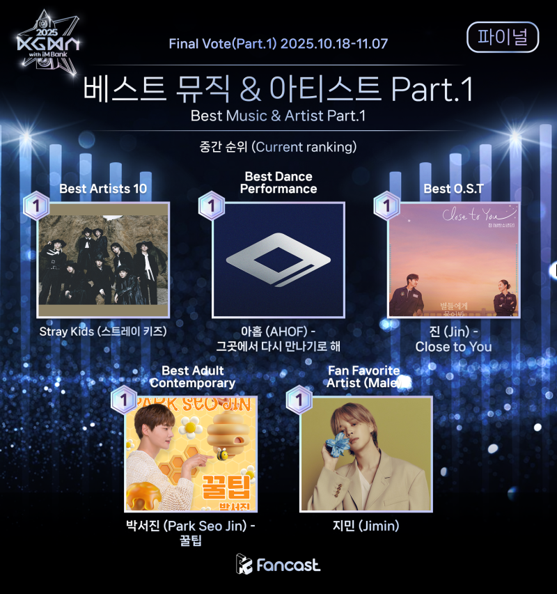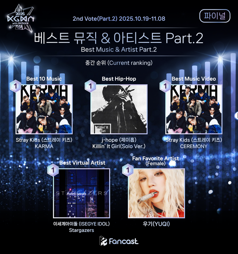 ‘2025 KGMA’ 파이널 투표 종료 임박…‘최종 인기상’ 투표 10·11일 오픈
