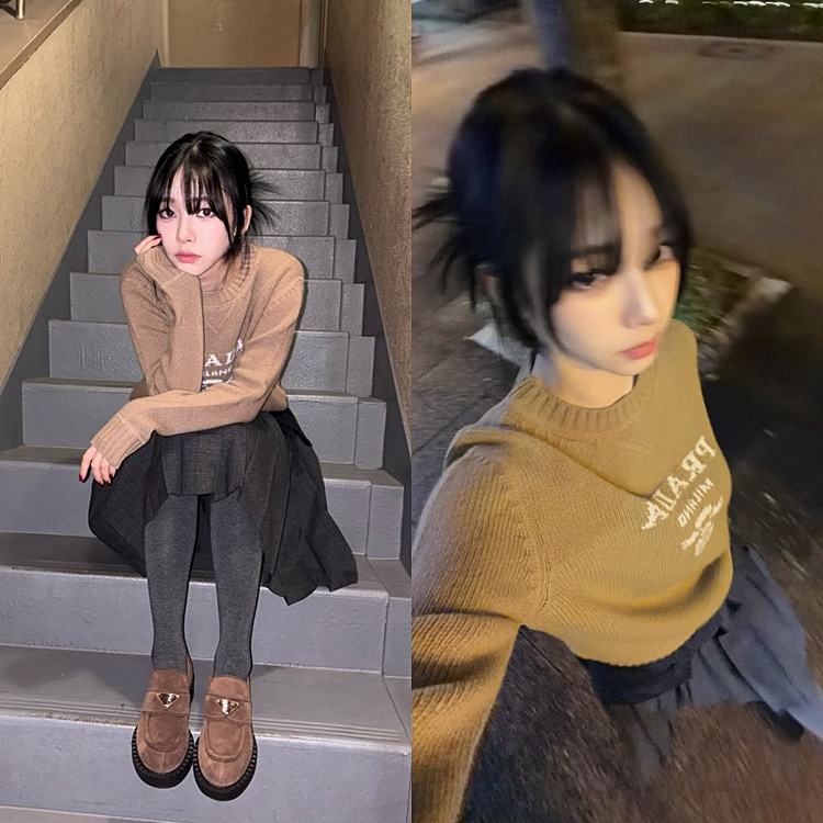 그는 베이지 톤의 프라다 니트에 그레이 스커트와 타이츠를 매치해 고급스러운 하이틴룩을 완성했다. 무심하게 묶어 내린 흑발 앞머리, 은은한 음영 메이크업이 더해져 특유의 청량하면서도 도회적인 분위기가 한층 돋보인다.