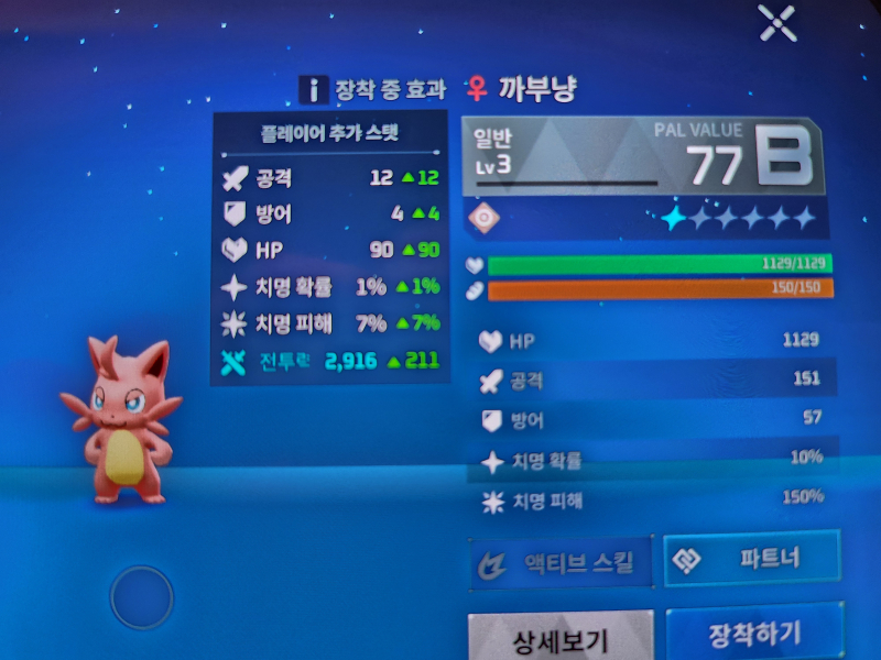 그렇게 포획한 팰은 서로 다른 능력을 보유하고 있다. 거점에 배치한 '두더비'는 시키지 않아도 알아서 채굴을 했다. 포획이 쉽지 않은 팰도 있다. 불꽃을 쏘며 이리저리 피해다니는 '파이호'를 어렵게 잡았더니 '여우불꽃' 스킬을 직접 쓸 수 있게 됐다. 팰은 적절한 역할을 부여하거나, 전투 때 소환해 함께 싸울 수 있다.