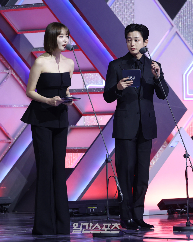 배우 이주연과 김민석이 시상자로 나서고 있다.