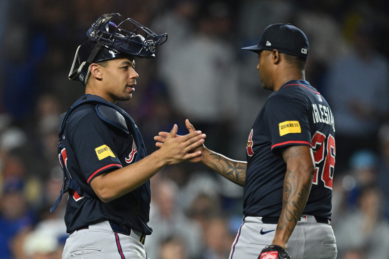 CHICAGO, ILLINOIS - SEPTEMBER 03: Drake Baldwin #30 and Raisel Iglesias #26 of the Atlanta Braves celebrate after the game against the Chicago Cubs at Wrigley Field on September 03, 2025 in Chicago, Illinois. Daniel Bartel/Getty Images/AFP (Photo by Daniel Bartel / GETTY IMAGES NORTH AMERICA / Getty Images via AFP)/2025-09-04 11:34:40/ <저작권자 ⓒ 1980-2025 ㈜연합뉴스. 무단 전재 재배포 금지, AI 학습 및 활용 금지>