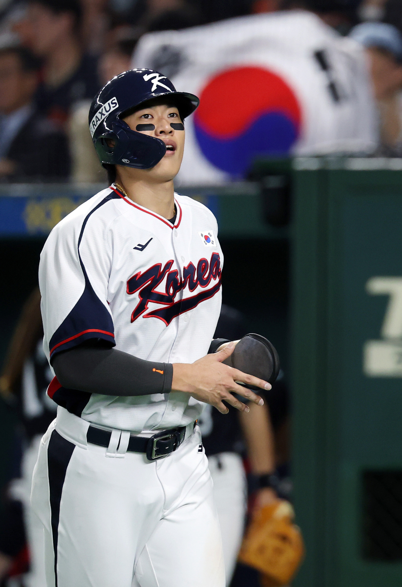 안현민은 16일 5-7로 패색이 짙던 8회 말 1사에서 다카하시 히로토(주니치 드래건스)를 상대로 대형 홈런을 빼앗았다. 다카하시는 2024년 일본 프로야구(NPB) 평균자책점(1.38) 전체 1위에 올랐고, 2023 월드베이스볼클래식(WBC)과 2024 프리미어12에서 총 5경기 11이닝 무실점을 기록한 에이스급 투수다. 일본 대표팀 이바타 히로카즈 감독은 이번 평가전을 앞두고 안현민을 경계 대상 1호로 지목했고, 15일 경기가 끝난 뒤 "메이저리그(MLB) 선수급"이라고 했다. (도쿄=연합뉴스) 이동해 기자 = 16일 일본 도쿄돔에서 열린 2025 K베이스볼 시리즈 대한민국과 일본의 평가전. 3회말 2타점 적시타와 더블스틸로 득점의 발판을 만든 송성문이 이닝 종료 공수 교대로 더그아웃 향하고 있다. <저작권자 ⓒ 1980-2025 ㈜연합뉴스. 무단 전재 재배포 금지, AI 학습 및 활용 금지> 올겨울 MLB 진출에 도전하는 송성문은 이틀 동안 9타수 3안타(1홈런) 3타점을 올렸다. 15일 1차전 2-0으로 앞선 4회 초 모리우라의 직구를 받아쳐 우측 관중석 상단에 꽂히는 비거리 119m(타구 속도 167.2㎞/h)의 대형 아치를 그렸다.
