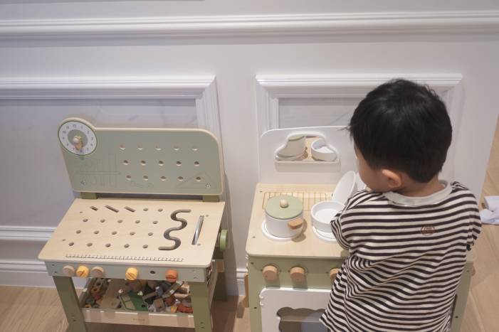 키즈룸에 비치된 아이용 놀이 용품. 호텔 내 카페트에 신경이 곤두서는 부모를 위한 마룻바닥 역시 아이를 데려오기 좋은 공간 구성이었다. 특히 걷지 못하는 영유아를 둔 부모에게는 더 시에나 프리모를 선택하기에 충분한 옵션이었다.