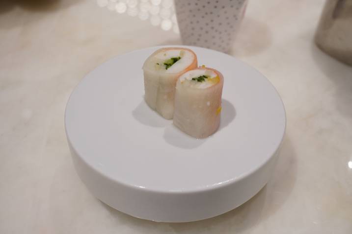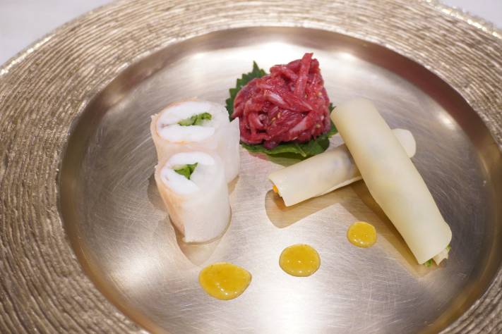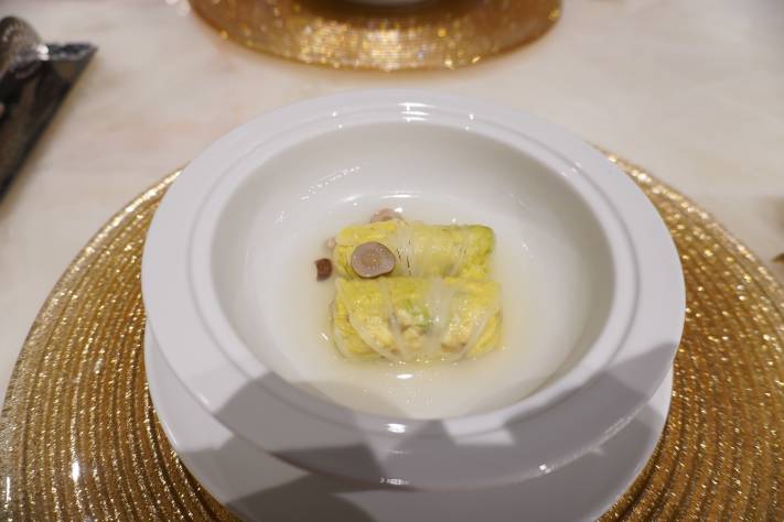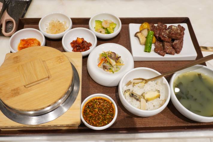 코스는 부각과 인삼튀김, 호두정과 등 주전부리가 나오고 전채 요리로 육회, 대하냉채, 밀쌈말이가 이어진다. 마지막 가을이 느껴지는 밤을 활용해 만든 밀키한 밤옹이 죽은 아이의 입맛을 사로잡았고, 옥돔 어만두, 신선로, 갈비구이, 솥밥, 성게미역국 등 메인 요리들이 차례로 이어졌다. 아이에게는 갈비구이 대신 떡갈비가 제공됐다. 마지막으로는 제주의 기념품이 된 오메기떡과 수정과로, 아이는 망고 등 과일과 쥬스로 디저트가 제공됐다.
