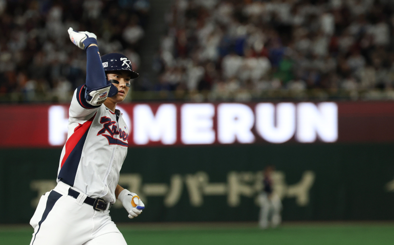 하지만 김주원은 그런 다이세이의 정면 승부를 맞받아 맞는 순간 홈런을 직감할 수 있는 타구를 생산했다. KBO리그에서 3시즌 두 자릿수 홈런을 친 그는 장타력을 갖춘 유격수로 정평이 났다. 15일 1차전에서도 안타 1개를 치며 배트를 예열한 그는 한국이 아웃카운트 1개면 한일전 11연패를 당하는 위기에서 가장 극적인 장면을 연출했다.