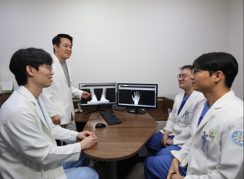 전문 의료진이 환자 맞춤 치료 방안에 대해 논의하고 있다. 바른세상병원 제공 손·발 부상도 전문병원 시대다. 신체 외상에 부상을 당면 보통 정형외과를 찾아 치료를 받는다. 손과 발은 50개 넘는 작은 뼈와 인대, 신경, 힘줄 등이 복잡하게 얽혀 있는 신체 부위다. 미세한 구조 변화에도 통증과 기능 장애가 쉽게 발생하는데 일반 병원보다 전문병원을 찾는 것이 요구된다.