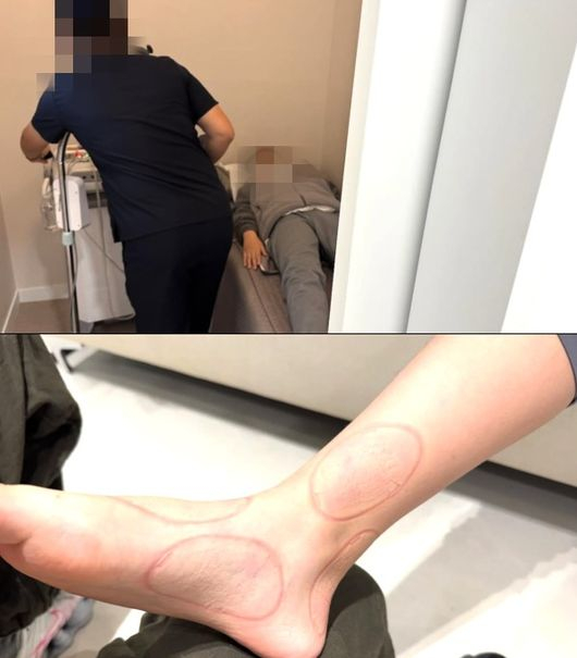 강성연은 18일 자신의 SNS에 자녀가 병원에서 발목 부위 치료를 받고 있는 모습이 담긴 사진을 게재했다.