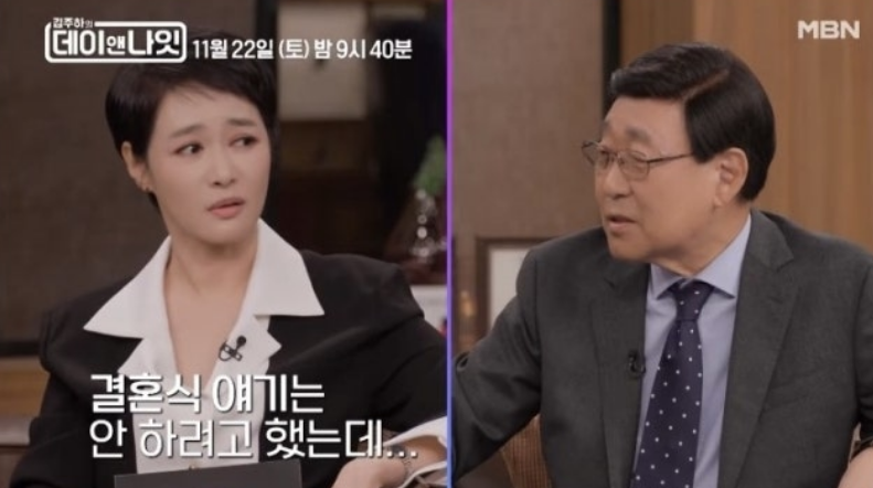김동건이 “결혼식에도 갔고 돌잔치에도 갔다”며 웃어 보이자, 김주하는 “결혼식 이야기는 안 하려고 했는데”라며 멋쩍은 표정을 지었다.