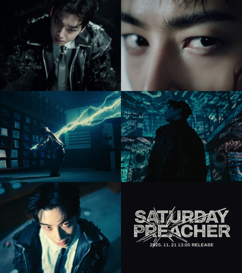상반된 무드가 공존하는 전개 속에서 차은우는 얼굴을 감싸던 손을 들어 올려 공중으로 향하게 하는 제스처로 퍼포먼스의 핵심을 암시한다. 이어 티저 후렴구에서는 차은우의 가성이 돋보이는 “새러데이 프리처”가 반복되다가, 마지막에는 보다 단단한 톤의 “히어 이즈 유어 새러데이 프리처”가 흘러나와 중독성과 여운을 더했다.