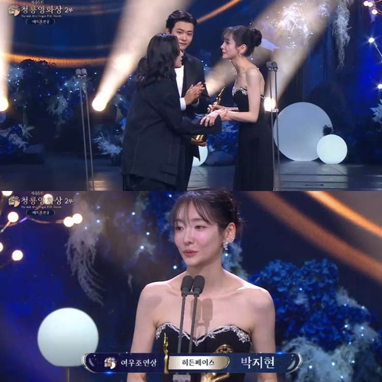 19일 서울 영등포구 KBS홀에서 열린 제46회 청룡영화상 시상식에서는 영화 ‘히든페이스’의 박지현이 여우조연상 트로피를 품에 안았다. 올해 후보군에는 신현빈(‘얼굴’), 염혜란(‘어쩔 수가 없다’), 이정은(‘좀비딸’), 전여빈(‘검은 수녀들’) 등 내로라하는 연기파 배우들이 포진하며 치열한 경쟁을 예고한 바 있다.