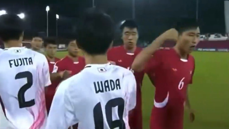 도열 후 양 팀 선수들이 악수 및 하이파이브로 인사를 나누는 과정이었다. 그런데 북한 선수들이 하이파이브 대신, 주먹으로 일본 선수들의 주먹을 내리친 것이다. 가벼운 터치가 아닌 전력으로 주먹을 내리치는 장면이 중계 화면을 통해 그대로 송출됐다.