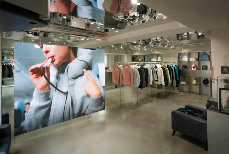 특히 매장 2층에는 공기의 주입·배출에 따라 형태가 변하는 ‘에어 소파’ 조형물이 설치돼 있어, 에어테크 기술의 원리를 예술적으로 표현하며 방문객들에게 브랜드 철학을 직관적으로 전달한다.