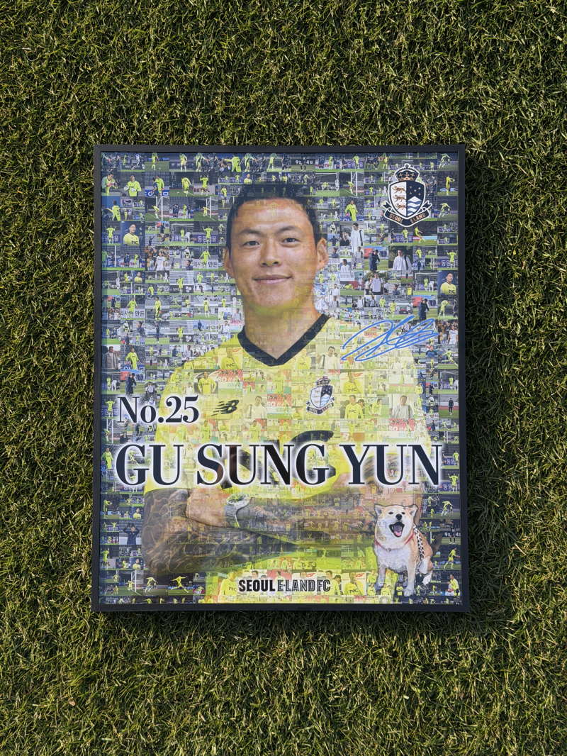 서울 이랜드 구단이 구성윤에게 선물한 액자. 사진=서울 이랜드 구성윤은 “감독, 코치진, 선수들이 가족 같은 분위기 속에서 지낸다. 서로 존중하는 모습을 보며 좋은 구단이란 걸 느꼈다”며 “어린 팬들에게 경기 끝나고 장갑, 유니폼을 주지만, 항상 따뜻하게 응원해 주시는 팬들에게 보답하고 싶었다. 그래서 이런 작은 이벤트를 마련했다”며 웃었다.