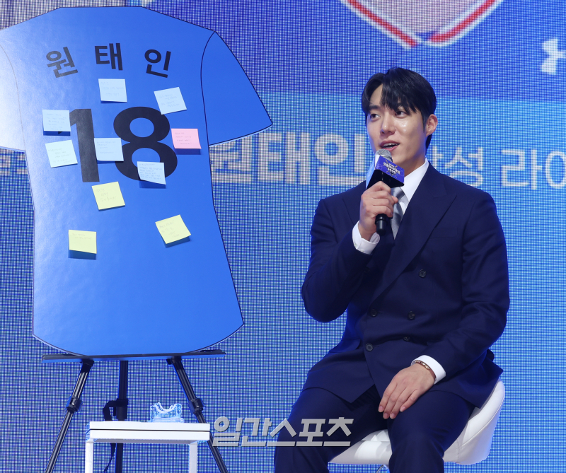 [포토] 2부 토크쇼, 인사말하는 원태인