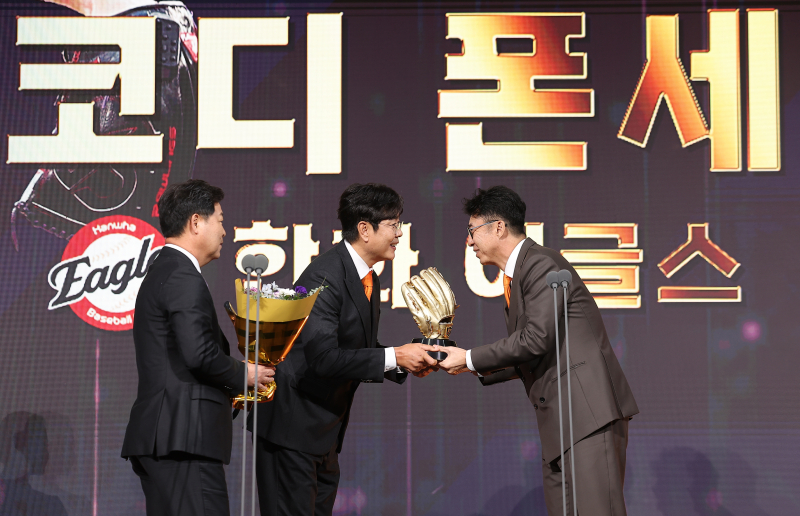 대리 수상자로 단상에 오른 손혁 한화 단장은 "이 상을 폰세에게 잘 전달하겠다. 미국에 있는 폰세가 감사 인사를 전했다"며 "자리에 참석하지 못해서 죄송하다고 전했다. 이상을 받게 해준 동료들, 코칭스태프, 감독들에게 감사하다고 했다"라고 말했다.