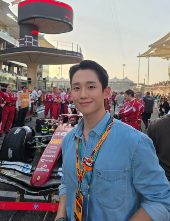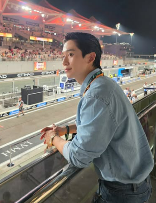 공개된 사진은 그가 지난 8일(현지시간) 아랍에미리트 아부다비에서 열린 2025 F1 시즌 최종전 ‘아부다비 그랑프리’ 현장을 찾았을 당시의 모습이다. 사진제공=정해인 SNS