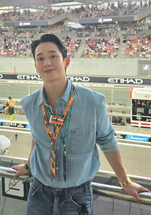 사진제공=정해인 SNS 그는 밝은 톤의 데님 셔츠에 짙은 컬러의 청바지를 매치한 ‘청청 패션’으로 눈길을 끌었다. 선글라스를 착용한 모습은 캐주얼하면서도 세련된 분위기를 자아냈다. 여기에 F1 행사 공식 패스가 달린 목걸이형 태그와 손목 밴드를 착용해 현장만의 에너지를 담아냈다. 또 다른 사진에는 트랙을 배경으로 카메라를 바라보며 밝게 웃고 있어 훈훈함을 자아냈다.